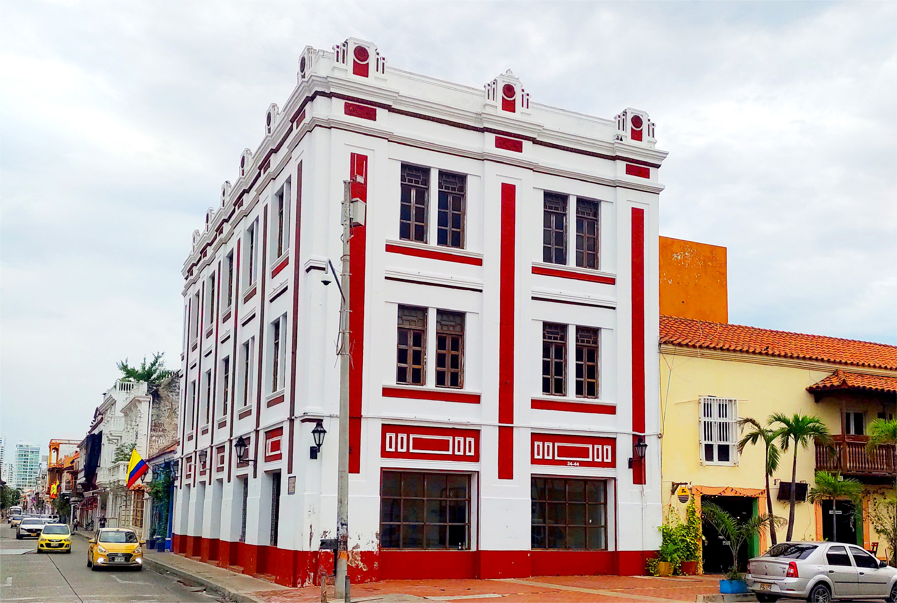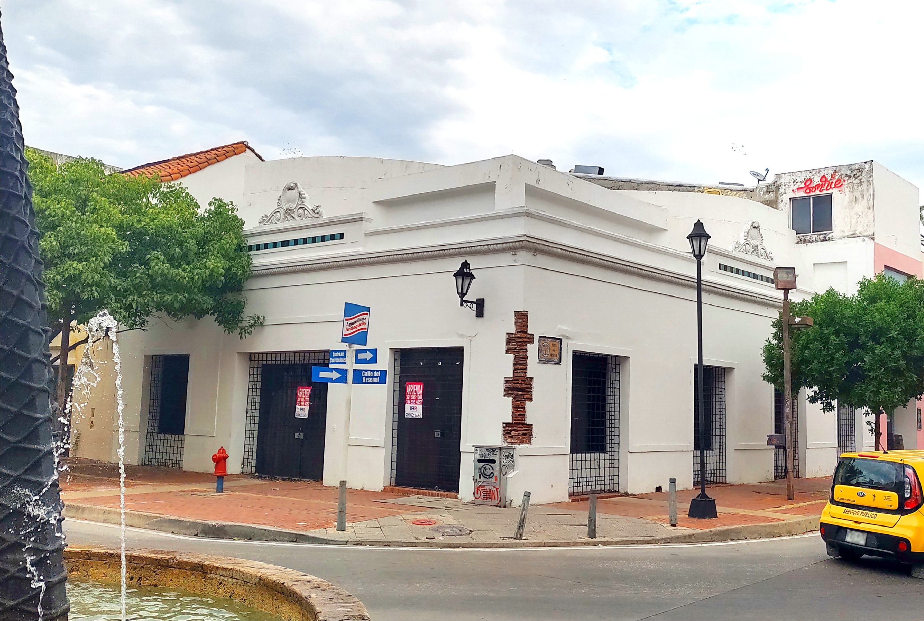 Aquí quedaba la casa de vivienda del prócer Pedro Romero, cuyo taller se ubicaba un poco más arriba por la calle Larga. El edificio actual pudo haber sido construido a mediados del siglo pasado, pues no se le ve en las primeras aerofotografías de la ciudad. En épocas del Mercado Público allí funcionó La Colombiana, que vendía productos de abasto en el día y al caer la tarde ponía unas mesas donde servían comida regional como venado, guartinaja o tortuga. Hoy es una de las sedes de la Universidad Rafael Nuñez, que también ocupó el claustro de San Francisco por algunos años.