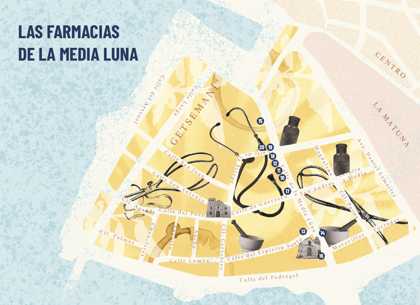 Los factores que explican esa vitalidad en medicina confluyeron durante la primera mitad del siglo pasado. El primero era la ubicación de la calle de la Media Luna como la única salida y entrada por tierra desde los pueblos de la región en toda la época colonial. Eso se transformó luego en que era uno de los puntos obligados para tomar los autobuses a los nuevos barrios de la ciudad, que creció imparable el siglo pasado. El motor económico que significaba el Mercado Público ayudaba aún más. Aquí se hacían todas las compras antes de regresar al pueblo o al barrio. Si había un lugar para ubicar un comercio de medicinas para humanos y animales eran la Media Luna y la calle Larga.