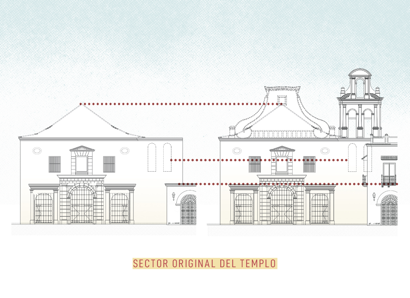 Planos de la fachada del templo. Arquitecto restaurador Ricardo Sánchez.